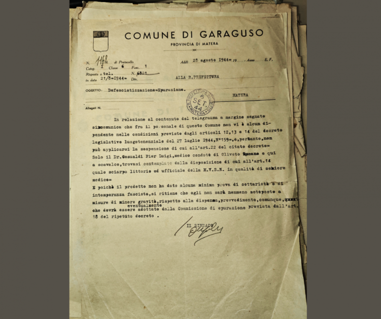 Ripercorrere questi documenti è un modo per capire quanto fosse complicato liberare non solo il territorio, ma anche l’amministrazione pubblica, dalle radici del regime.