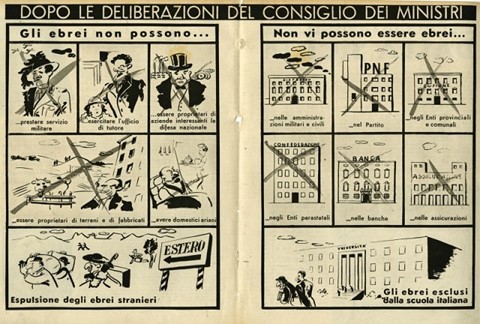 Il 1938 rappresentò un anno cruciare. Il 14 luglio, Il Giornale d’Italia pubblicò il documento noto come “Manifesto degli scienziati razzisti”, nel quale si afferma l’esistenza delle razze, l’appartenenza degli italiani alla razza ariana e la non appartenenza degli ebrei alla razza italiana. Su queste basi ideologiche venne costruita la legislazione razziale del novembre 1938.