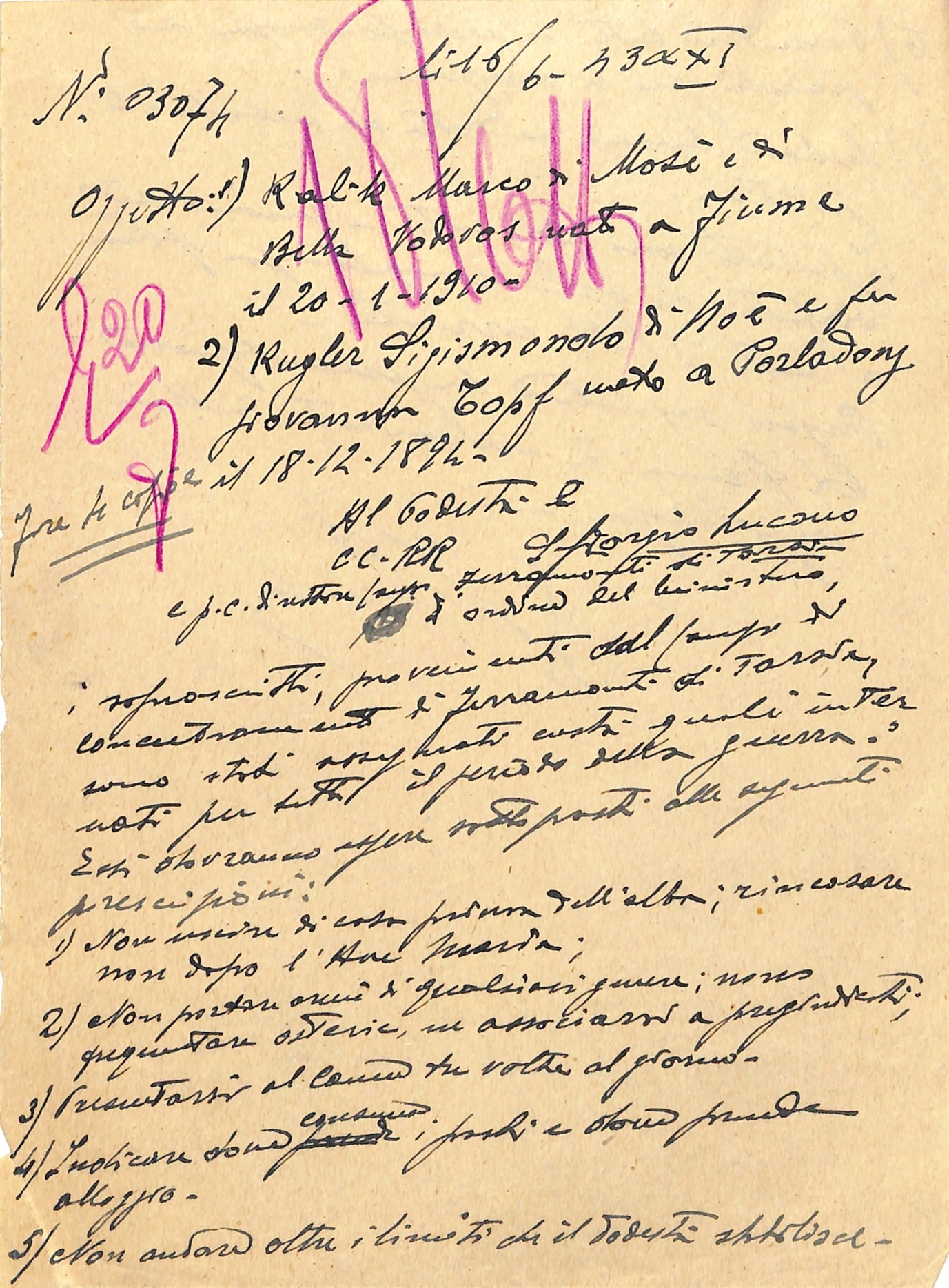 Le circolari successive chiarirono che, oltre agli ebrei stranieri, potevano essere internati anche ebrei italiani ritenuti “pericolosi”, nonché antifascisti, apolidi, stranieri di paesi nemici e altre categorie considerate indesiderabili.