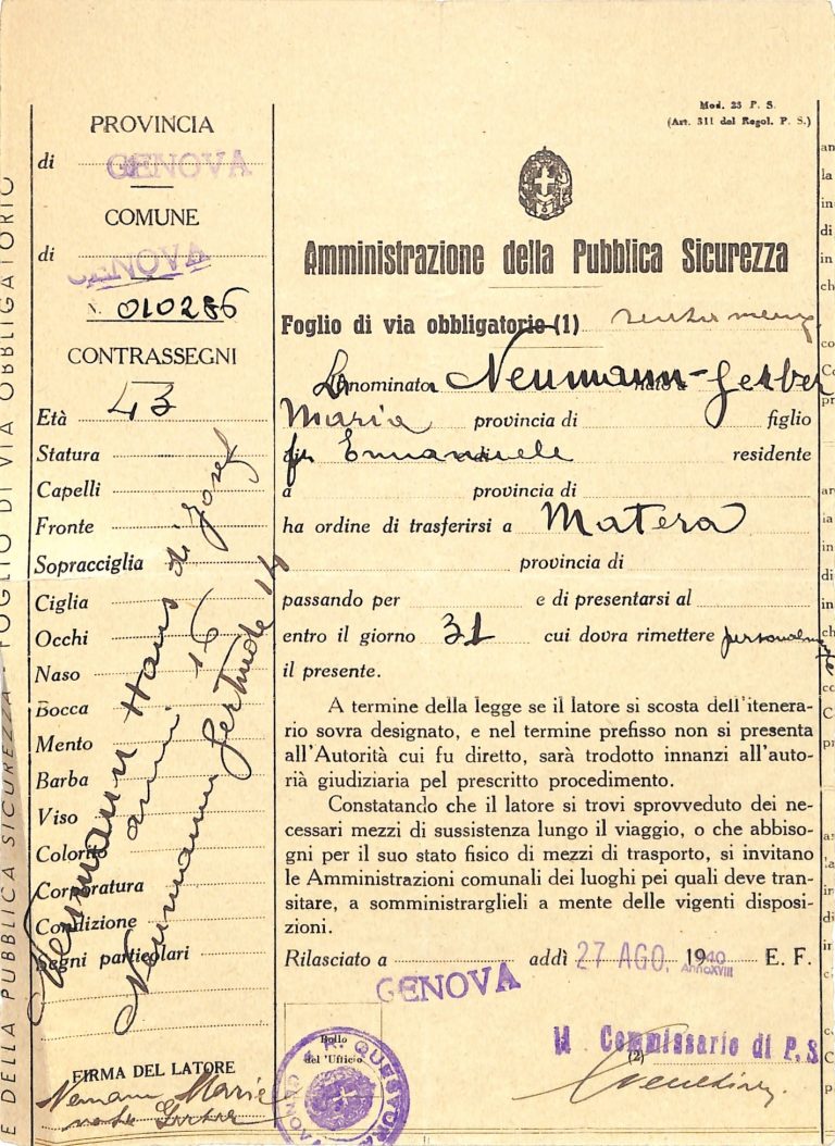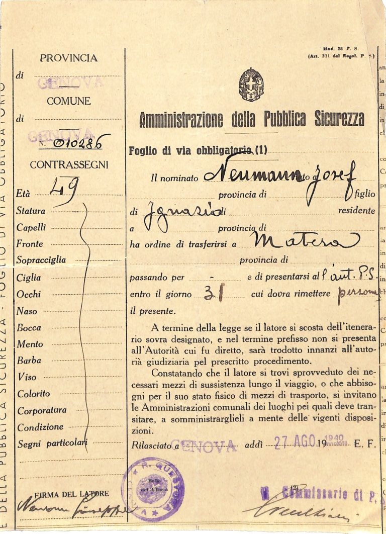 La presente sezione della mostra digitale ricostruisce, attraverso la documentazione d’archivio, le storie di confino e di internamento di ebrei italiani e stranieri, con particolare riferimento al territorio della Basilicata e ai fondi della Questura e della Prefettura conservati presso l’Archivio di Stato di Matera.