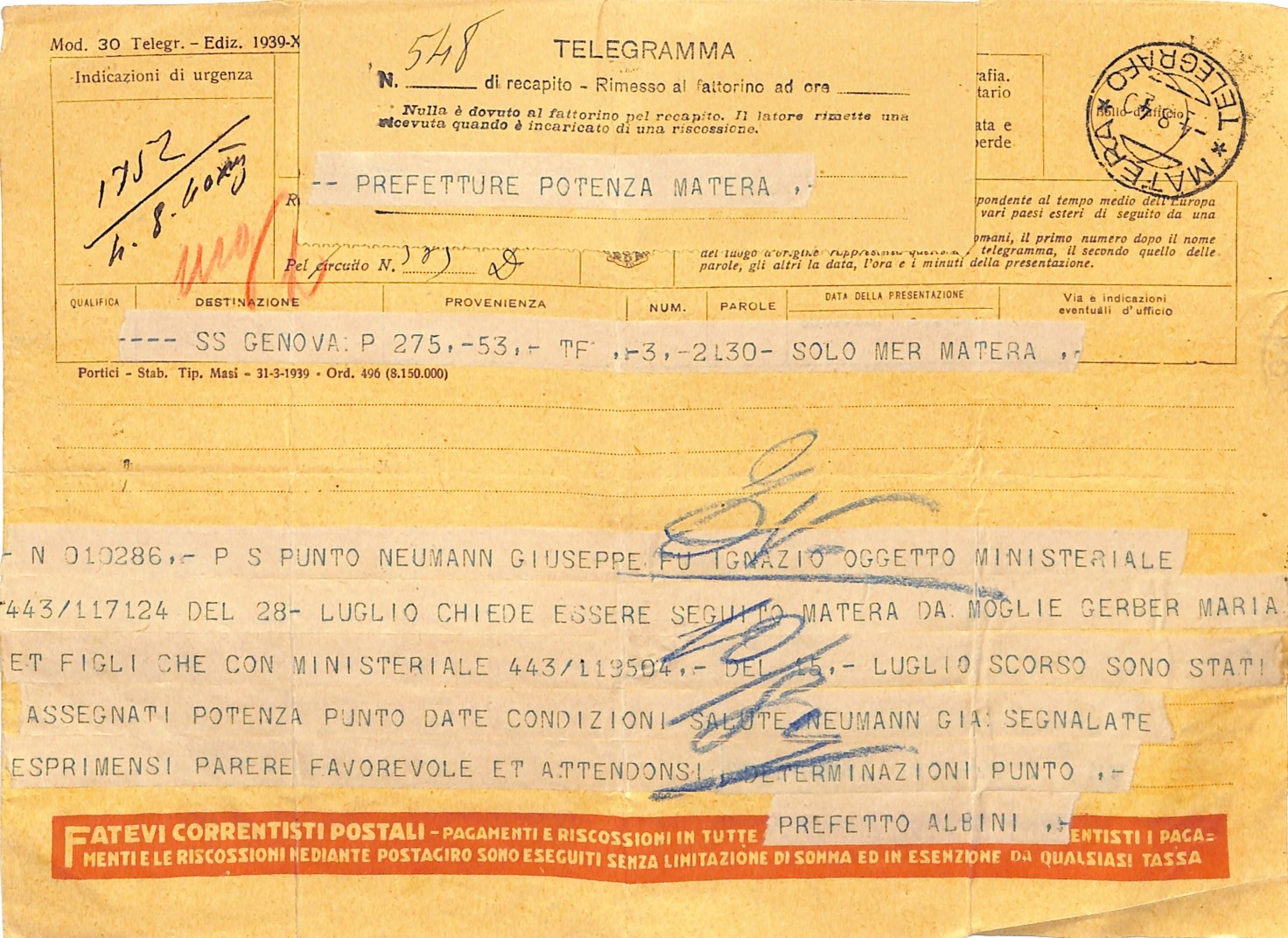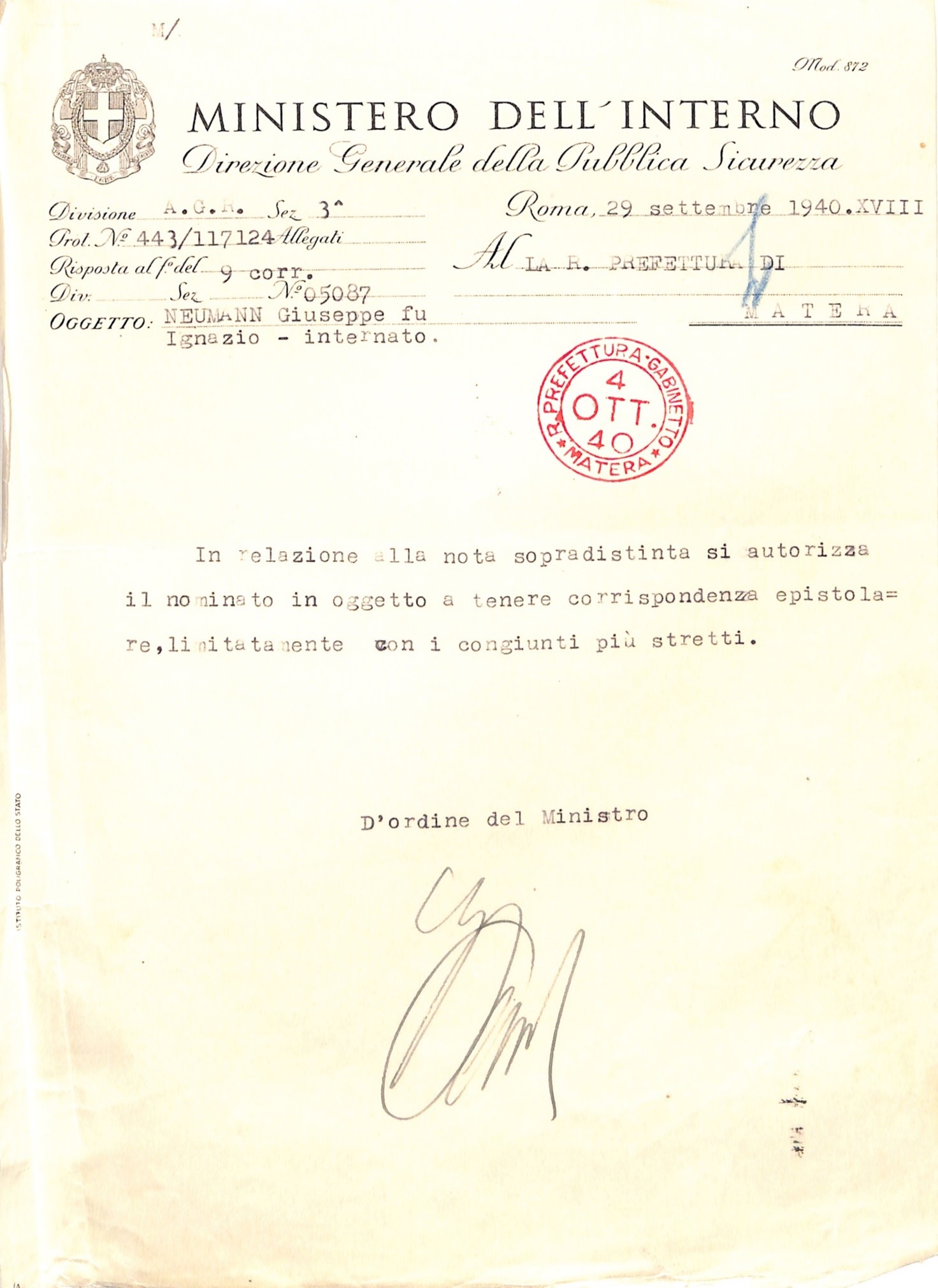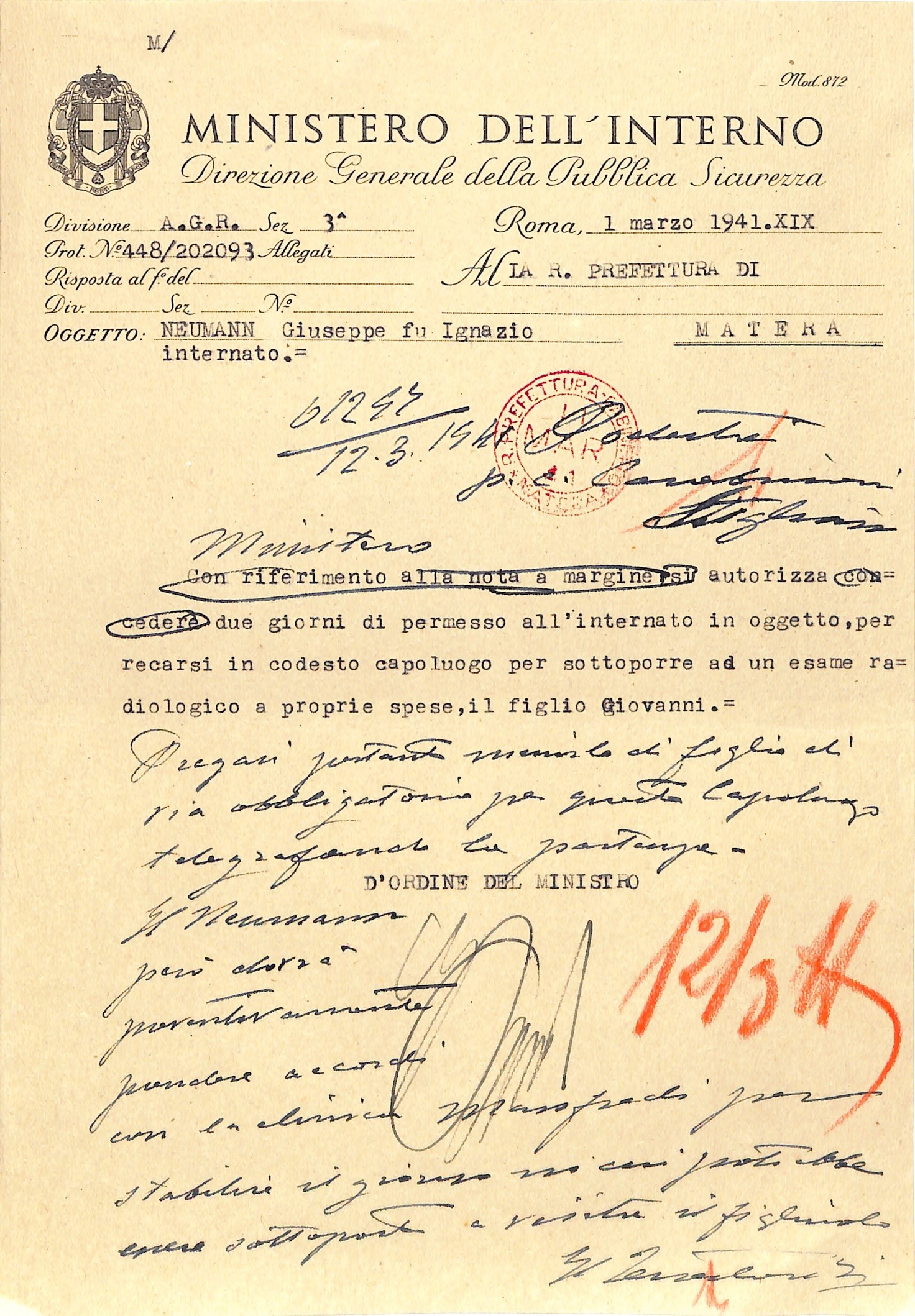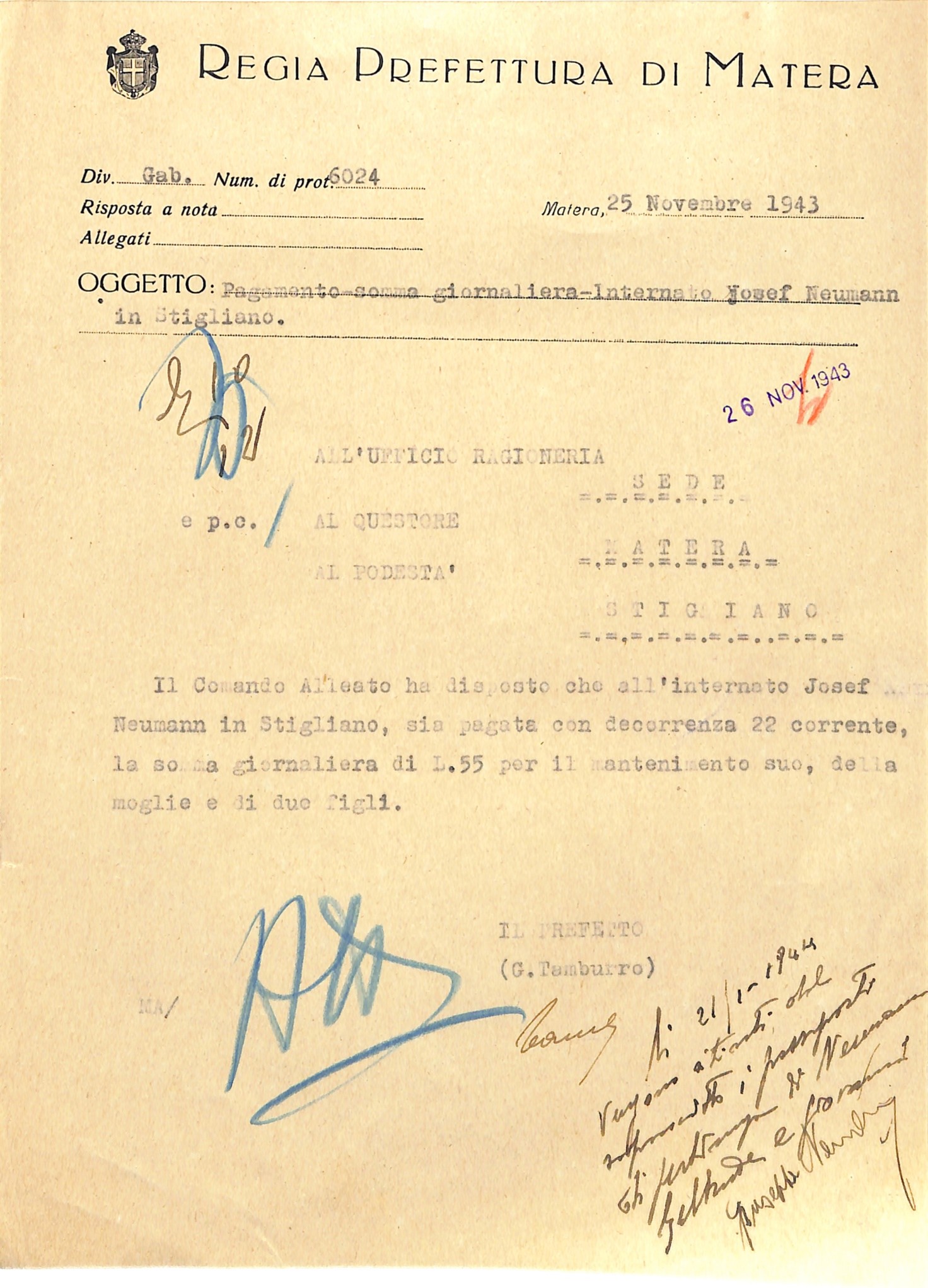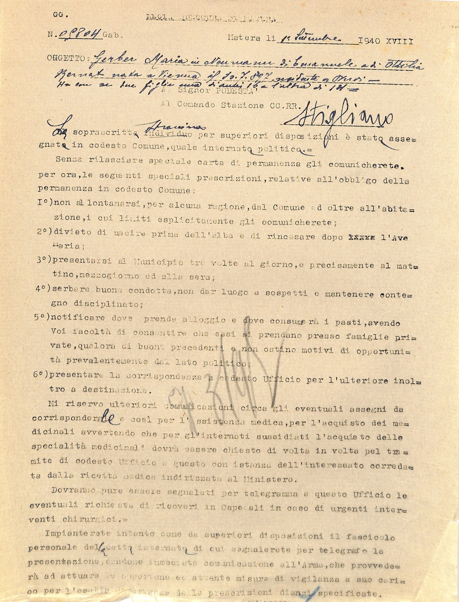 La documentazione conservata presso l’Archivio di Stato di Matera testimonia le condizioni di vita durante il confino: fogli di via, richieste di sussidio, permessi di uscita, corrispondenza familiare.
